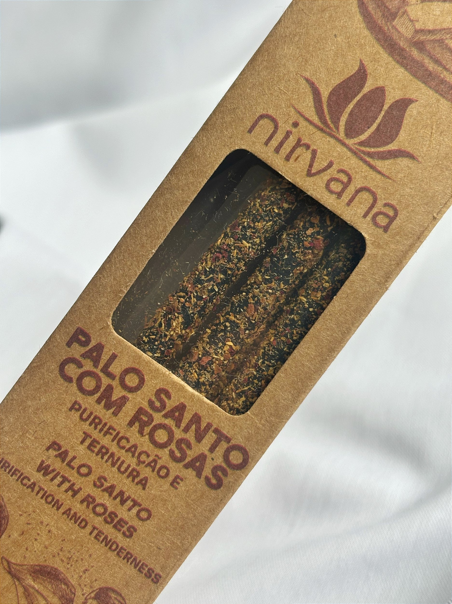 O incenso de palo santo com rosas traz uma combinação excelente de aromas, proporcionando limpeza do campo astral e promovendo ternura e amor para o ambiente.